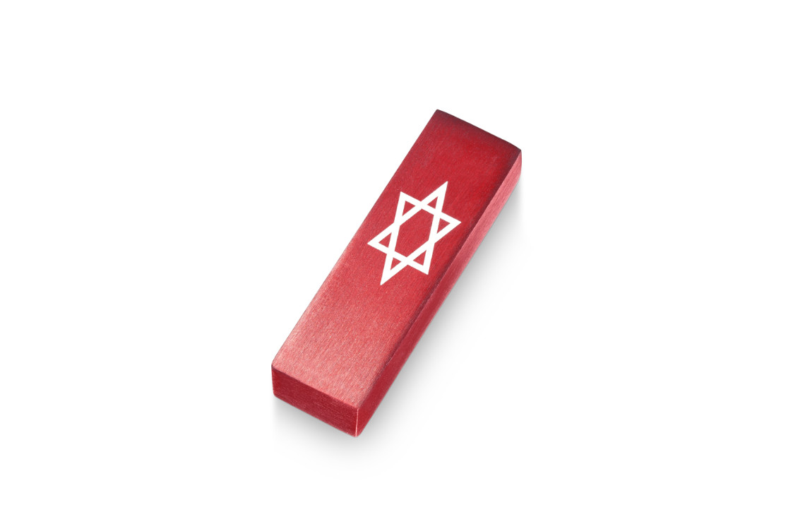 ALUMINUM RED STAR OF DAVID CAR MEZUZAH
