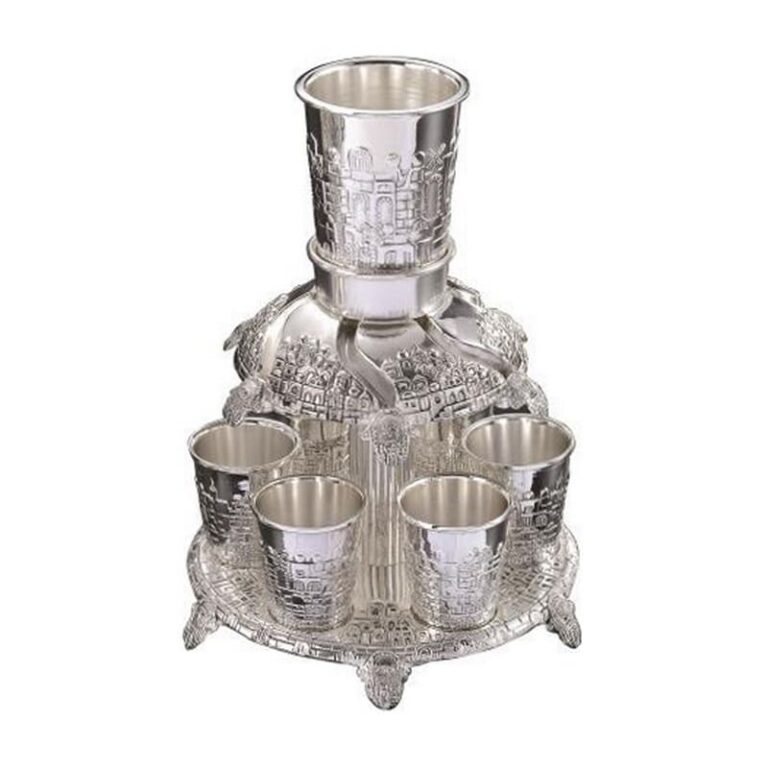 SILVER PLATED JERUSALEM WINE DIVIDER W/6 SMALL CUPS & TRAY