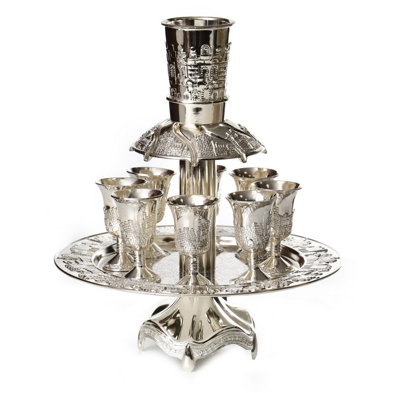 SILVER PLATED JER. WINE DIVIDER/8 SMALL CUPS/TRAY 29.5 CM.