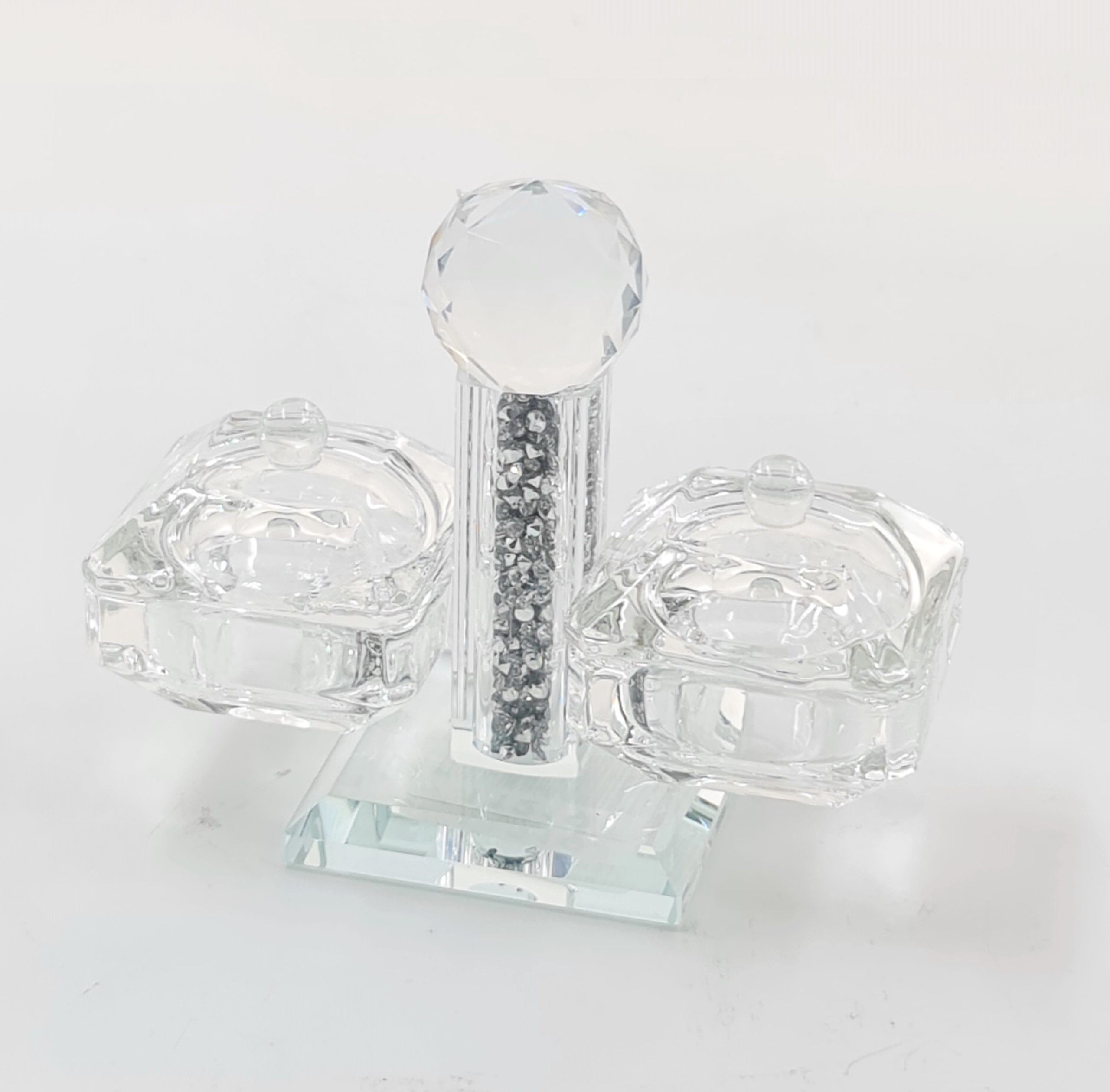 / SQUARE CRYSTAL OPEN/LIDS/SILVER SPARKS SALT DISH