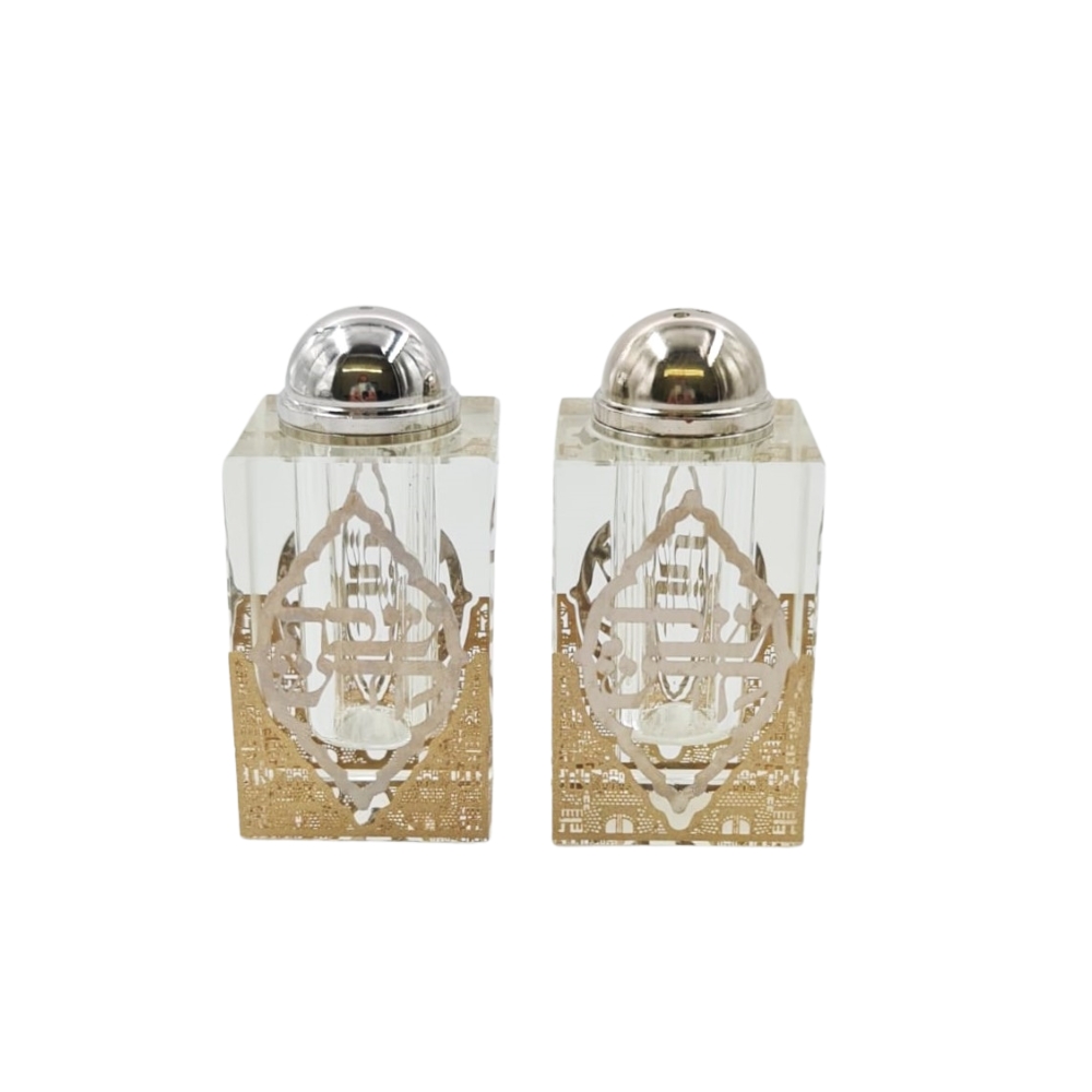 CRYSTAL/GOLDEN JERUSALEM PLAQUE SALT/PEPPER DISH 8 CM.