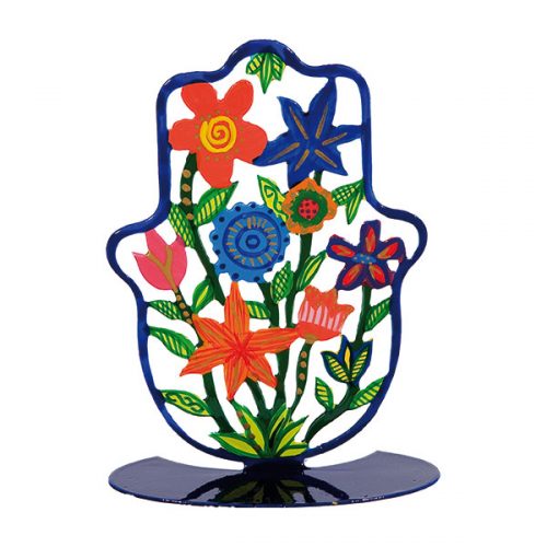 LASER CUT HAND PAINTED FLOWERES MEDIUM STAND HAMSA