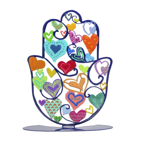 LASER CUT HAND PAINTED HEARTS LARGE STAND HAMSA