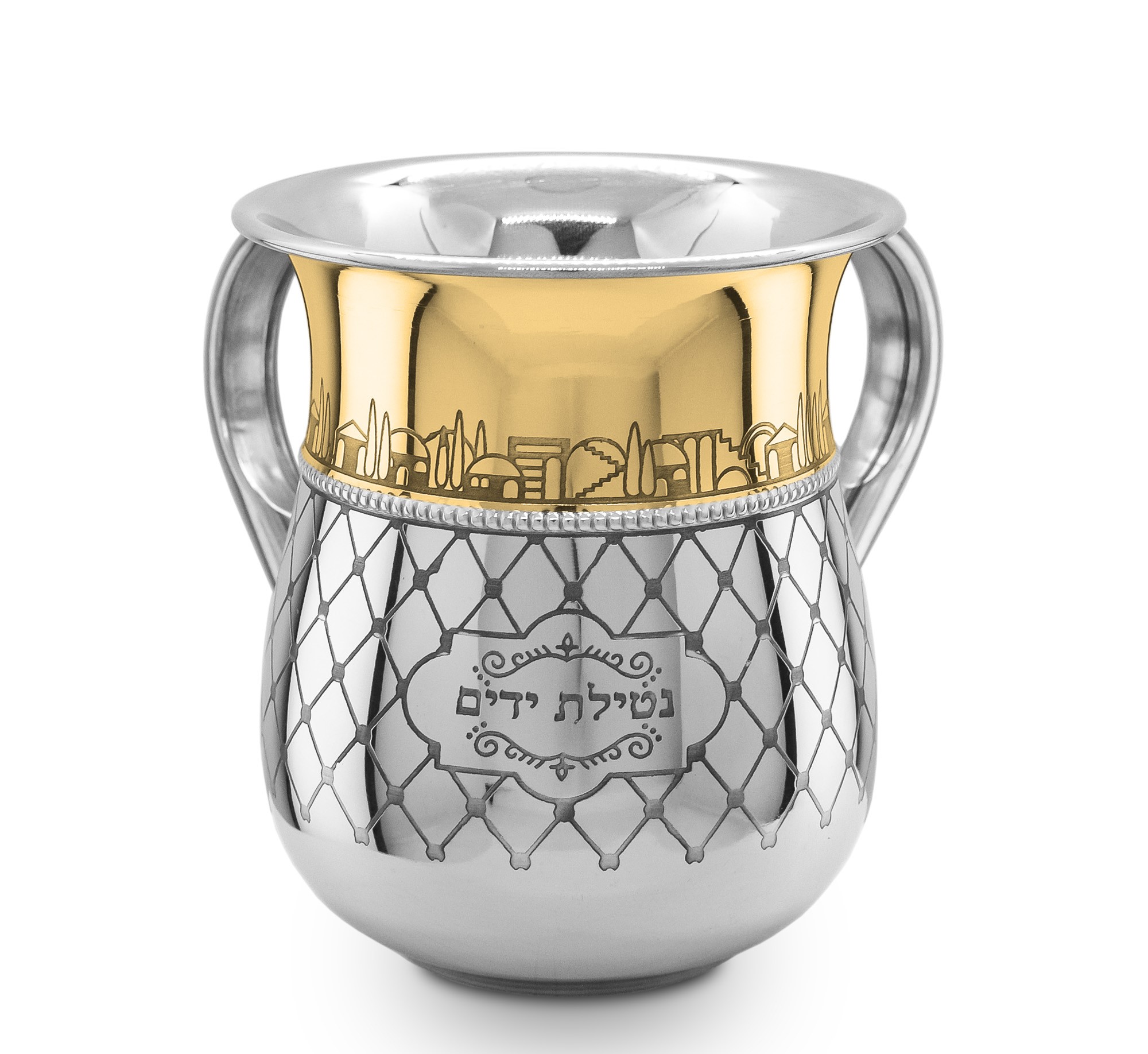 STAINLESS STEEL/GOLDEN JERUSALEM ETCHING NETILAT YADYIM CUP