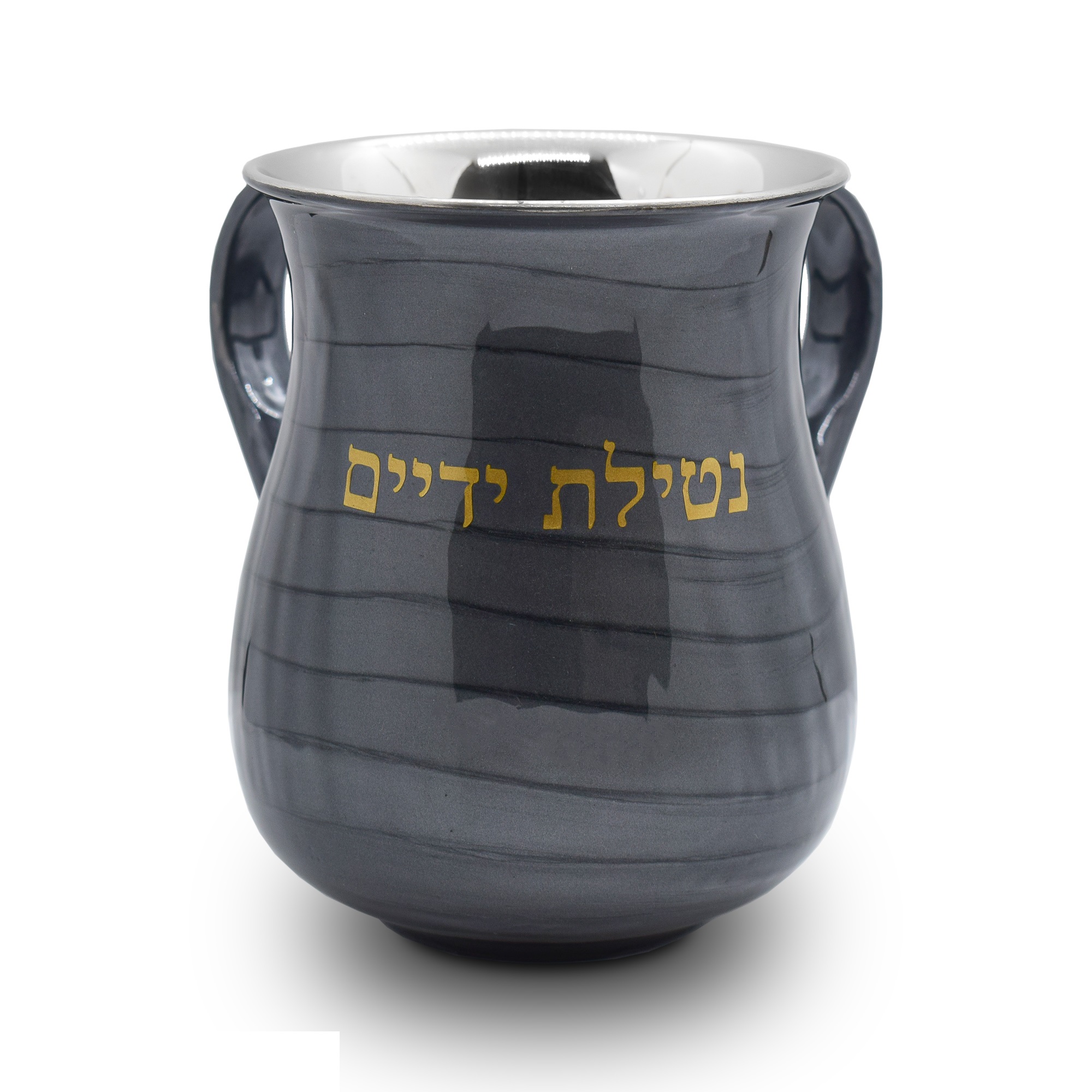 / STAINLESS STEEL DARK GREY ENAMEL NETILAT YADYIM CUP