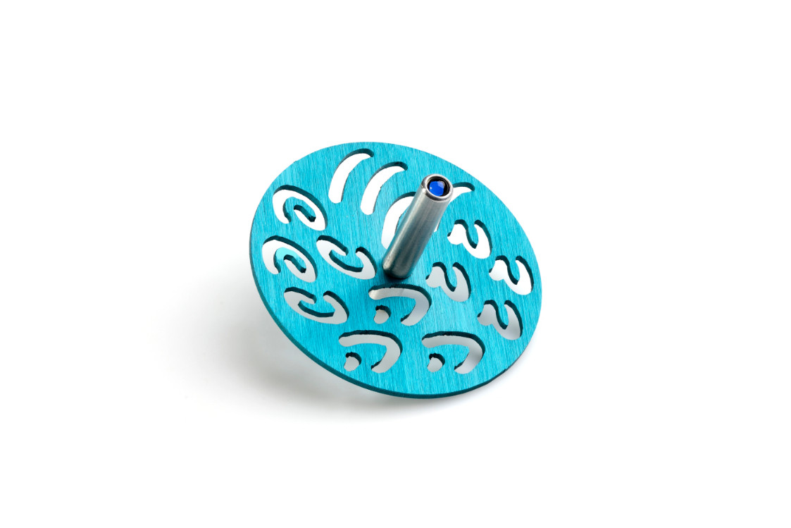 ALUMINUM TURQUOISE “LETTERS” DREIDEL ON STAND