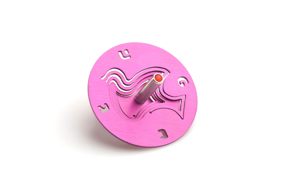 ALUMINIUM PINK DOVE DREIDLE ON STAND