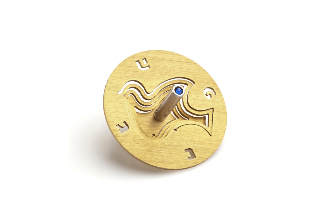 ALUMINIUM GOLD DOVE DREIDLE ON STAND