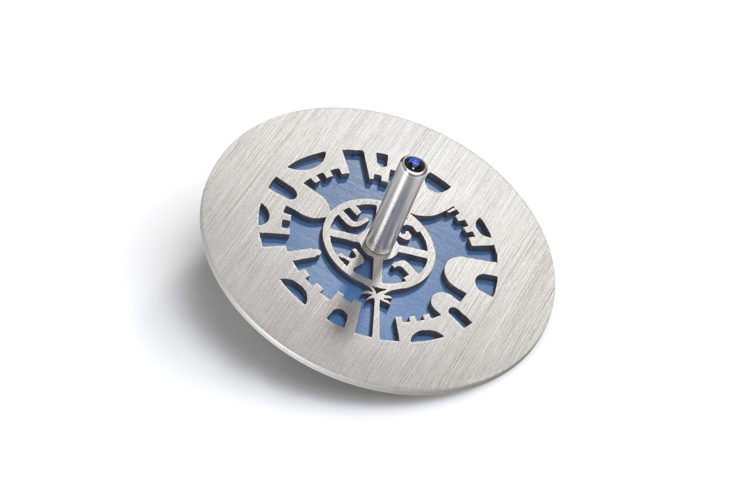 ALUMINUM BLUE JERUSALEM DREIDEL ON STAND