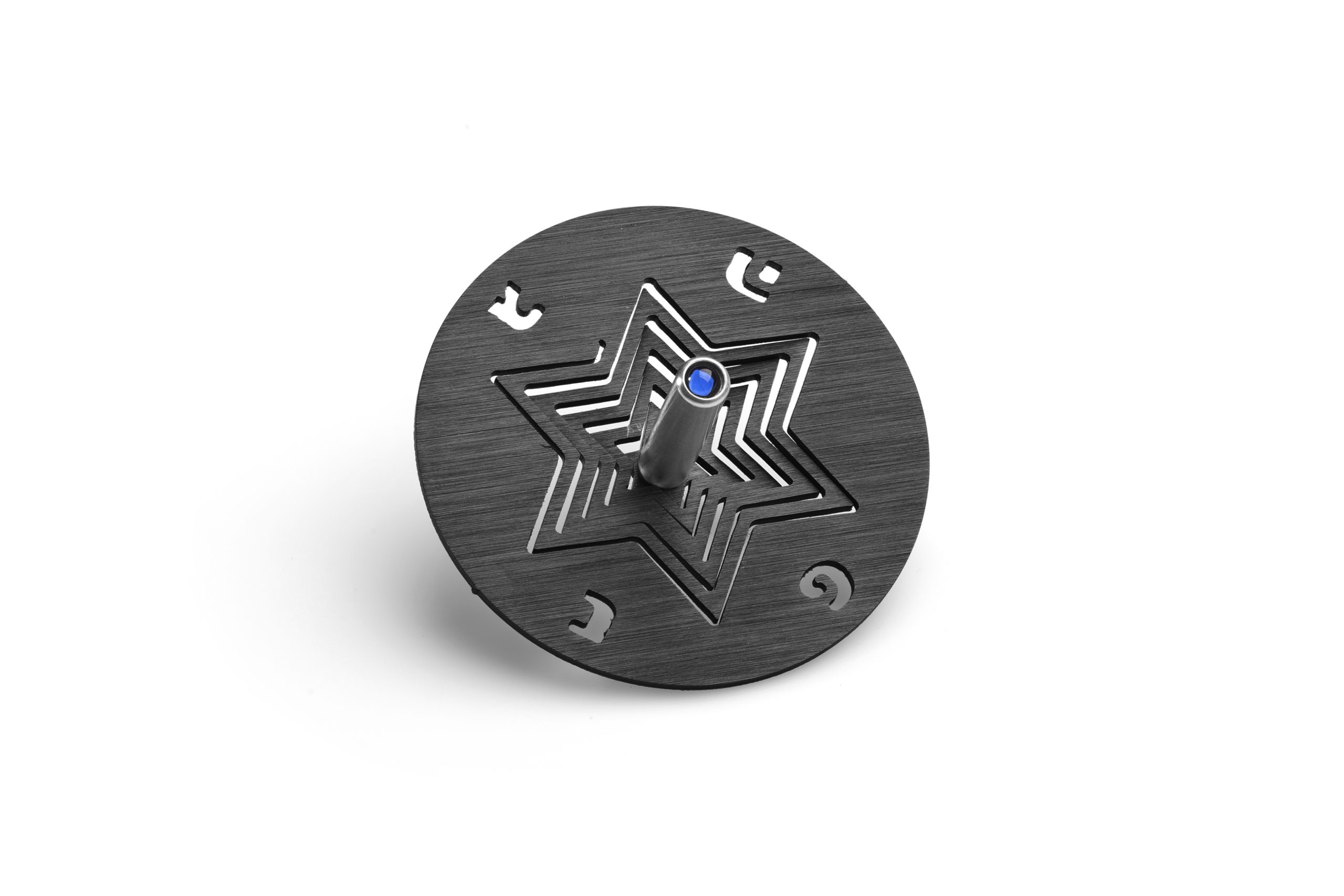 ALUMINUM BLACK STAR OF DAVID DREIDEL ON STAND