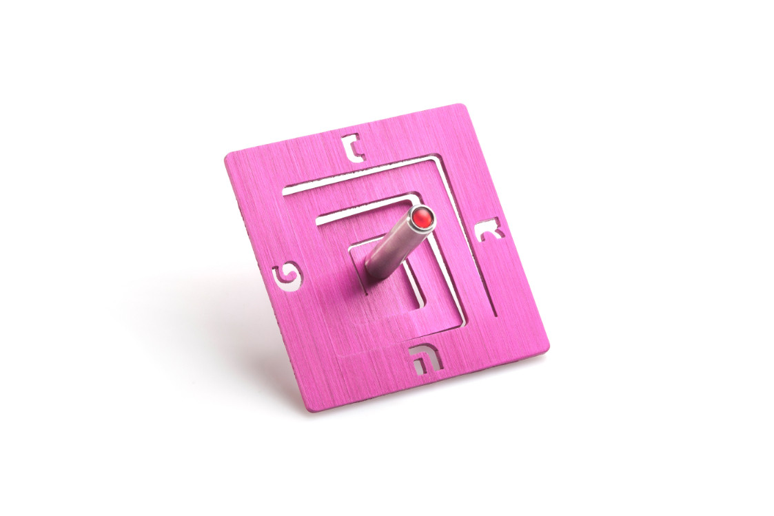 ALUMINUM PINK SQUARE SPIRAL DREIDEL ON STAND
