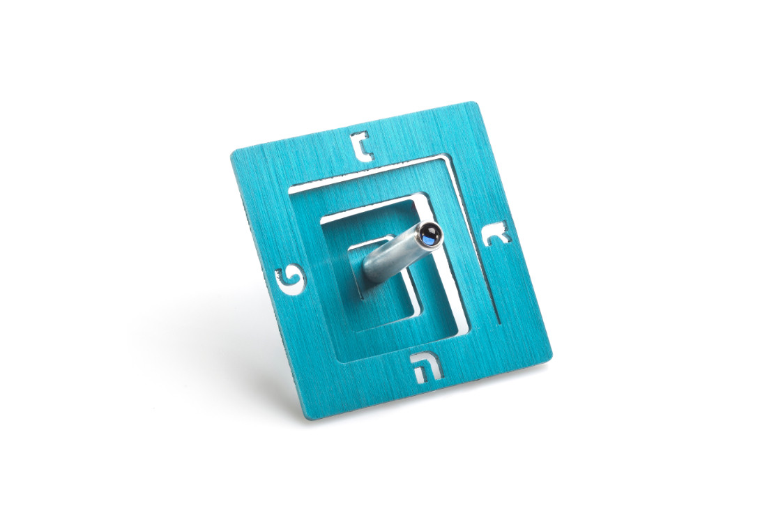 ALUMINUM TURQUOISE SQUARE SPIRAL DREIDEL ON STAND