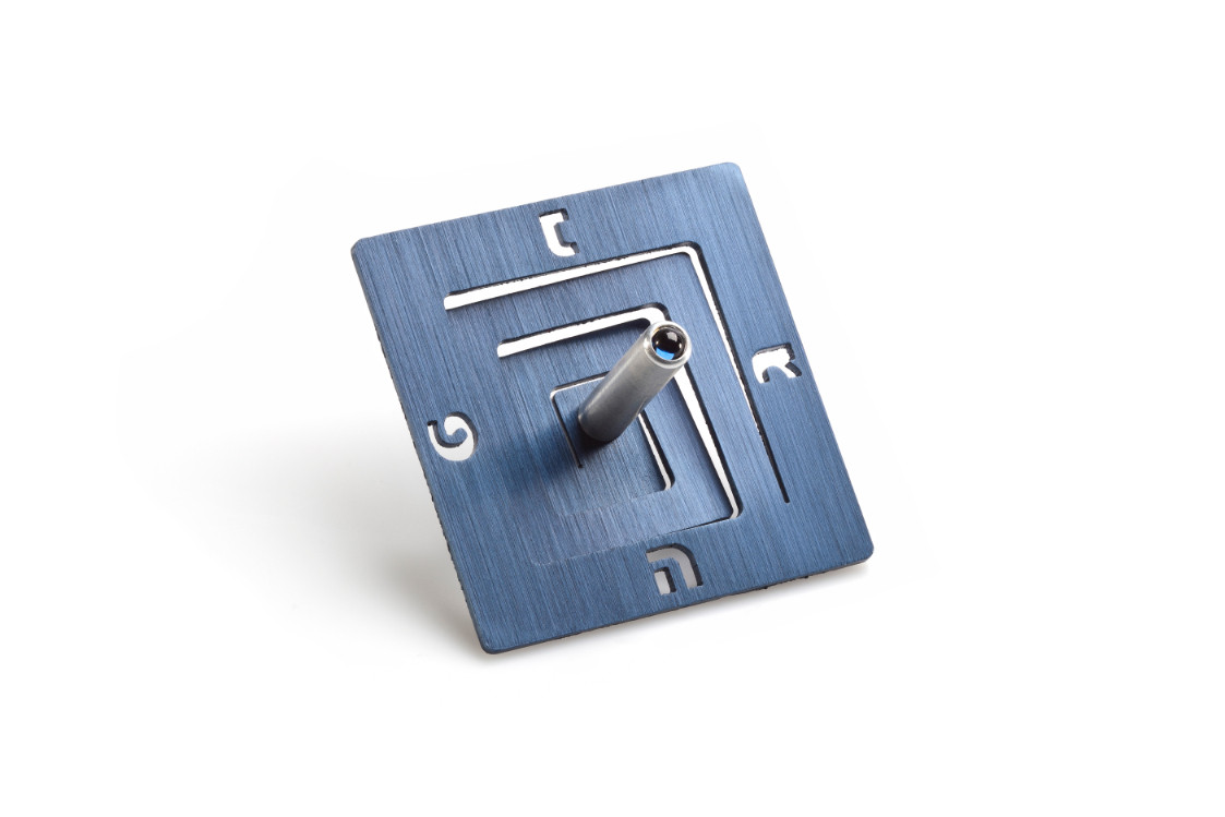 ALUMINUM BLUE SQUARE SPIRAL DREIDEL ON STAND