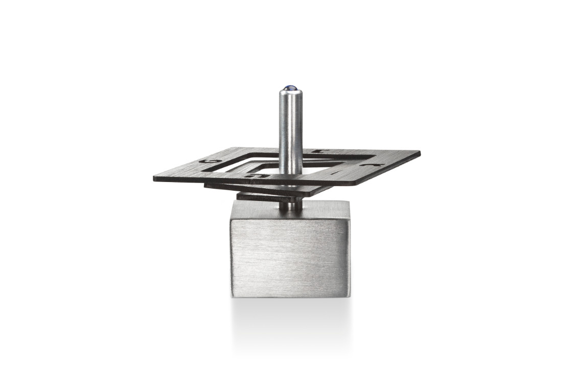 ALUMINUM BLACK SQUARE SPIRAL DREIDEL ON STAND