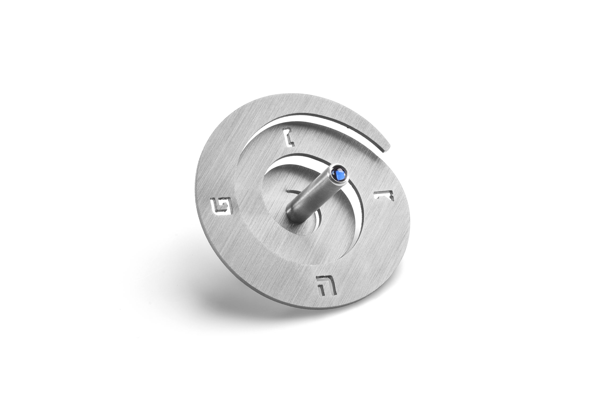ALUMINUM SILVER SPIRAL DREIDEL ON STNAD