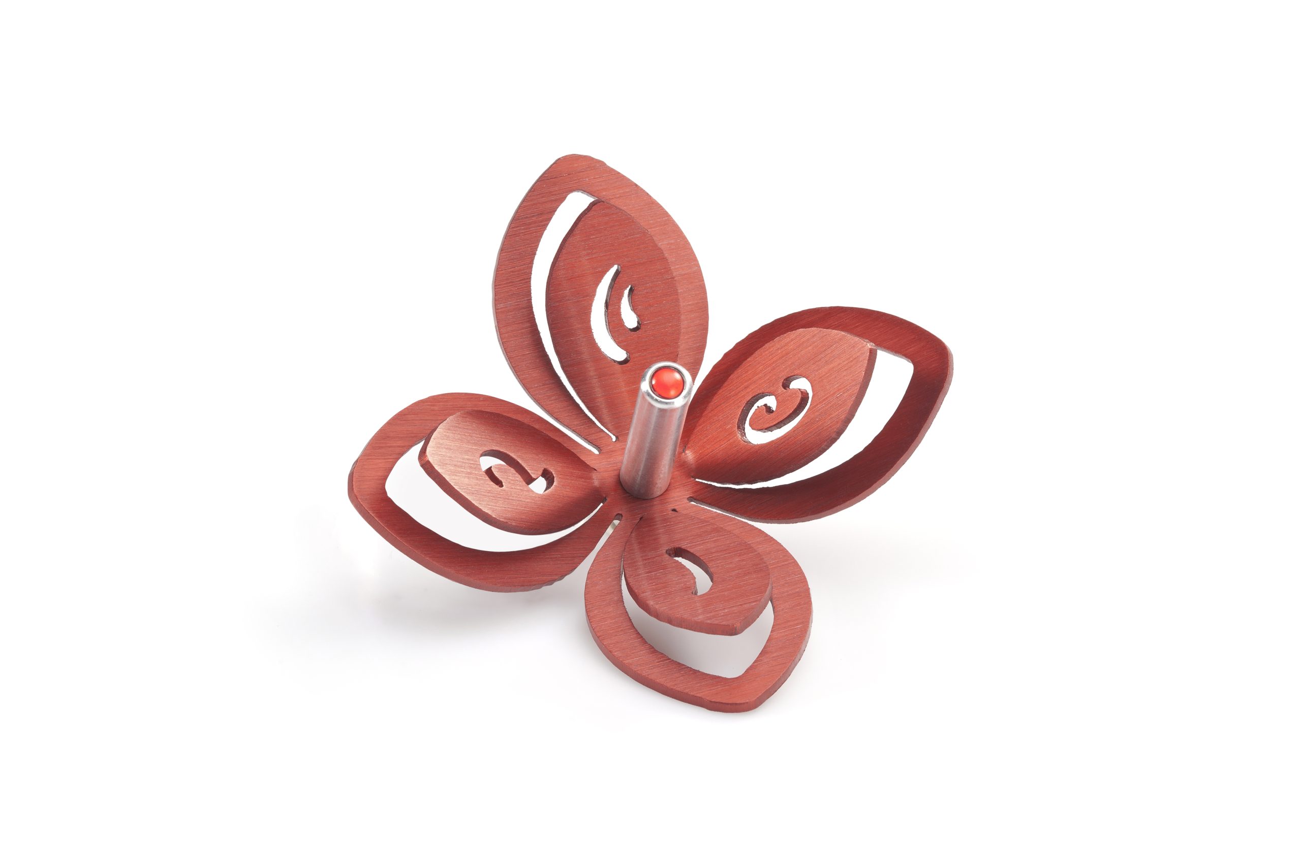 ALUMINUM RED FLOWER DREIDEL ON STAND