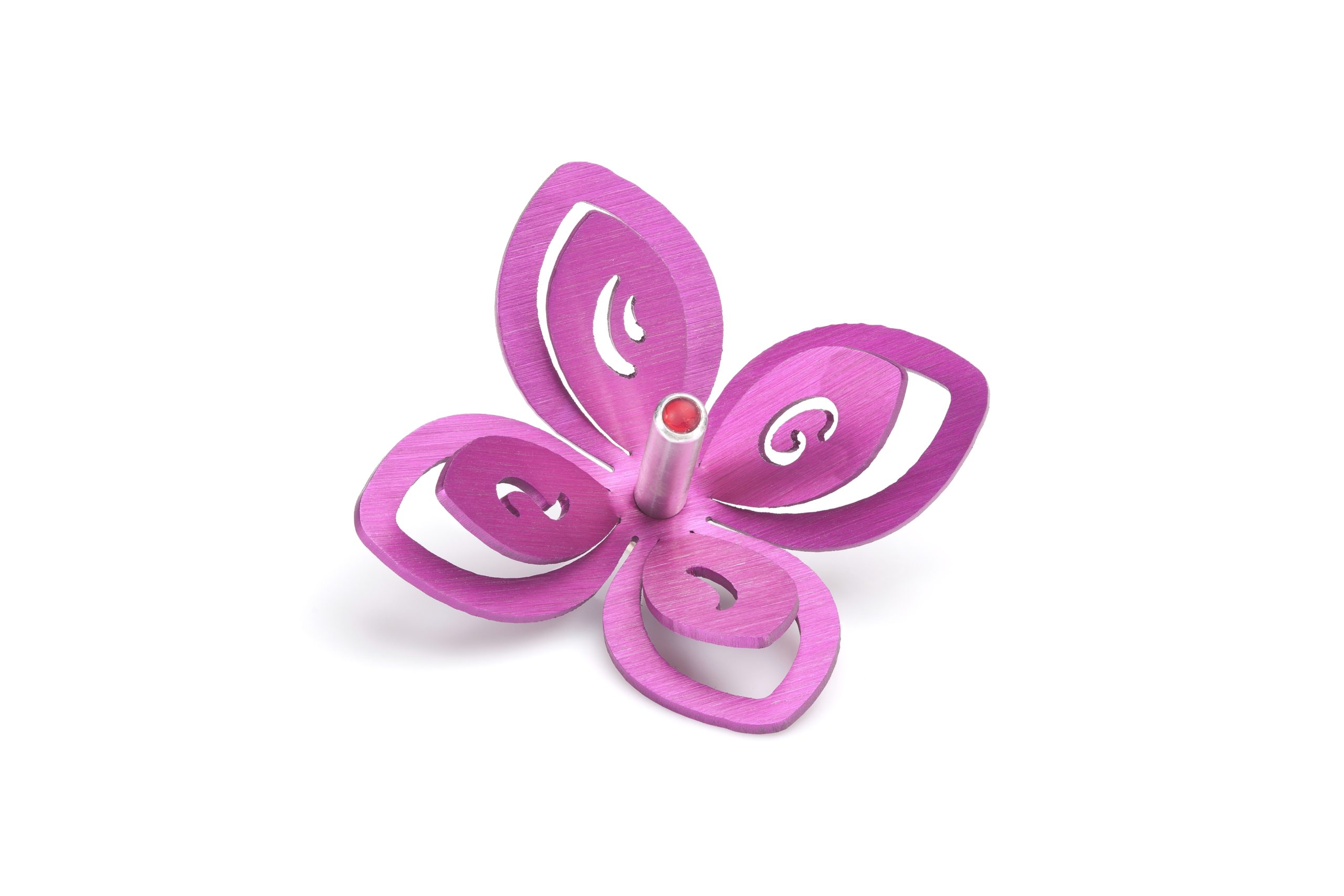 ALUMINUM PINK FLOWER DREIDEL ON STAND