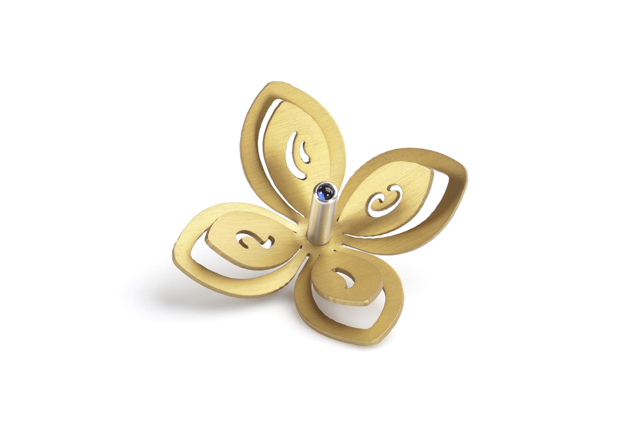 / ALUMINUM GOLD FLOWER DREIDEL ON STAND