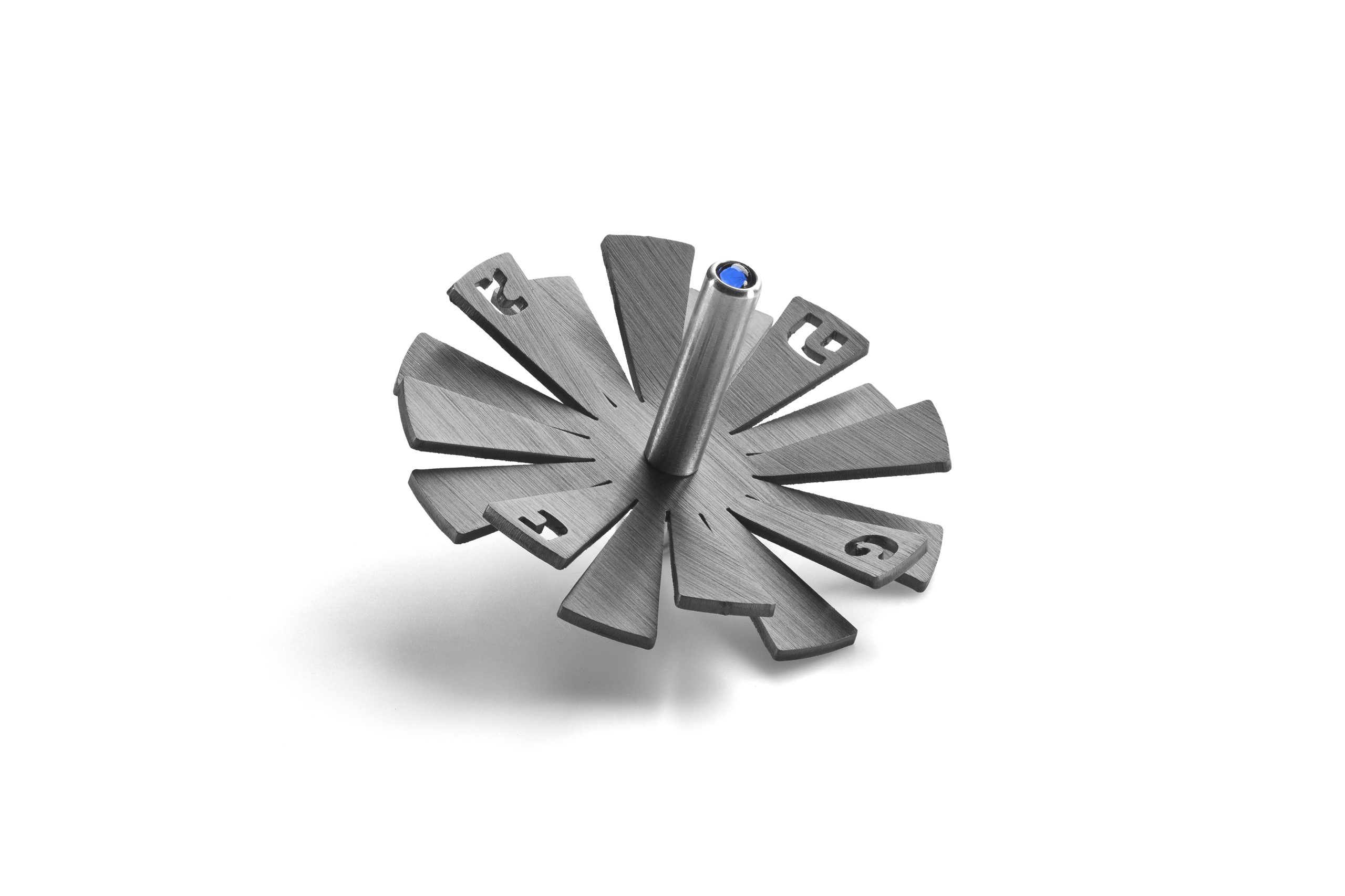 ALUMINUM GREY SUNSHINE DREIDEL ON STAND