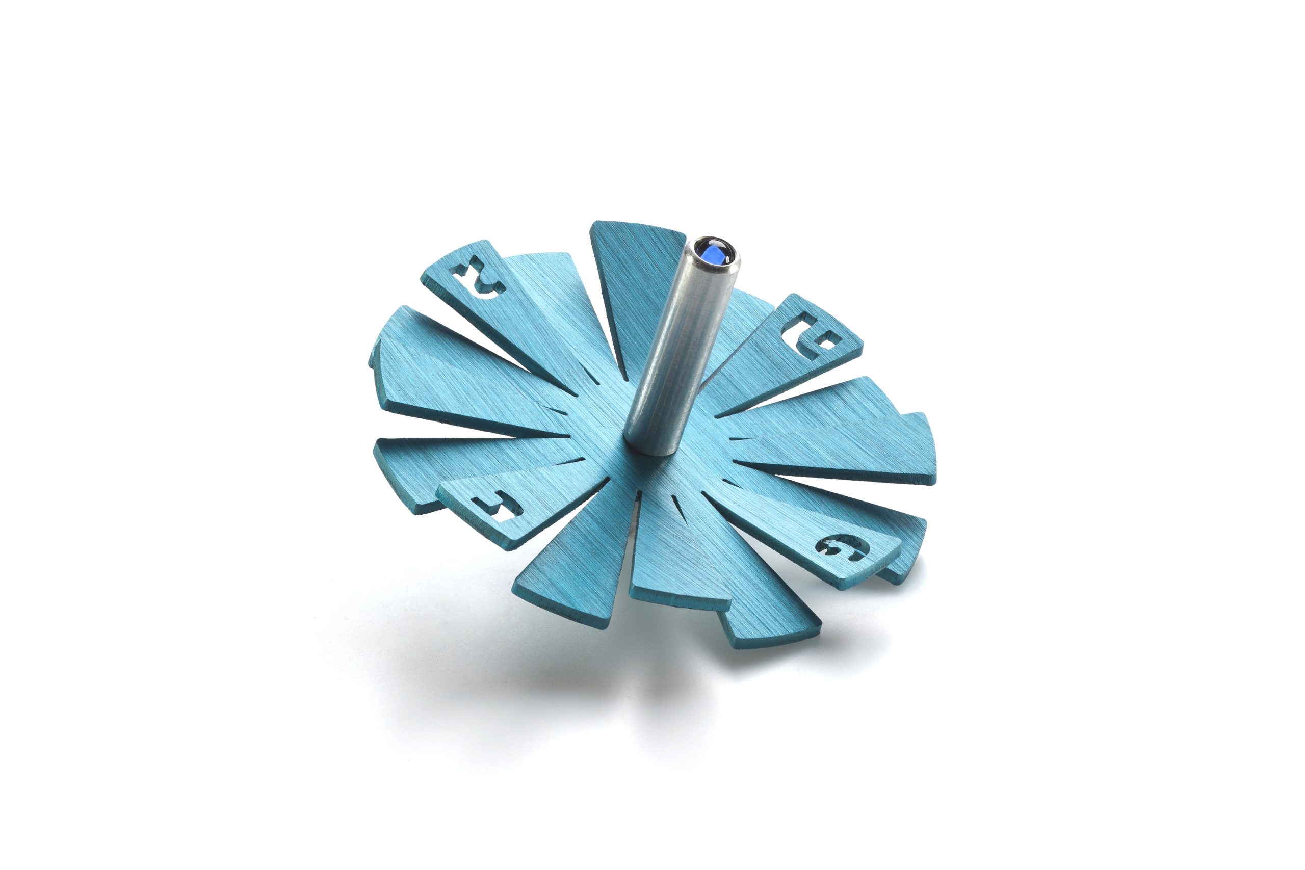 ALUMINUM TURQUOISE SUNSHINE DREIDEL ON STAND