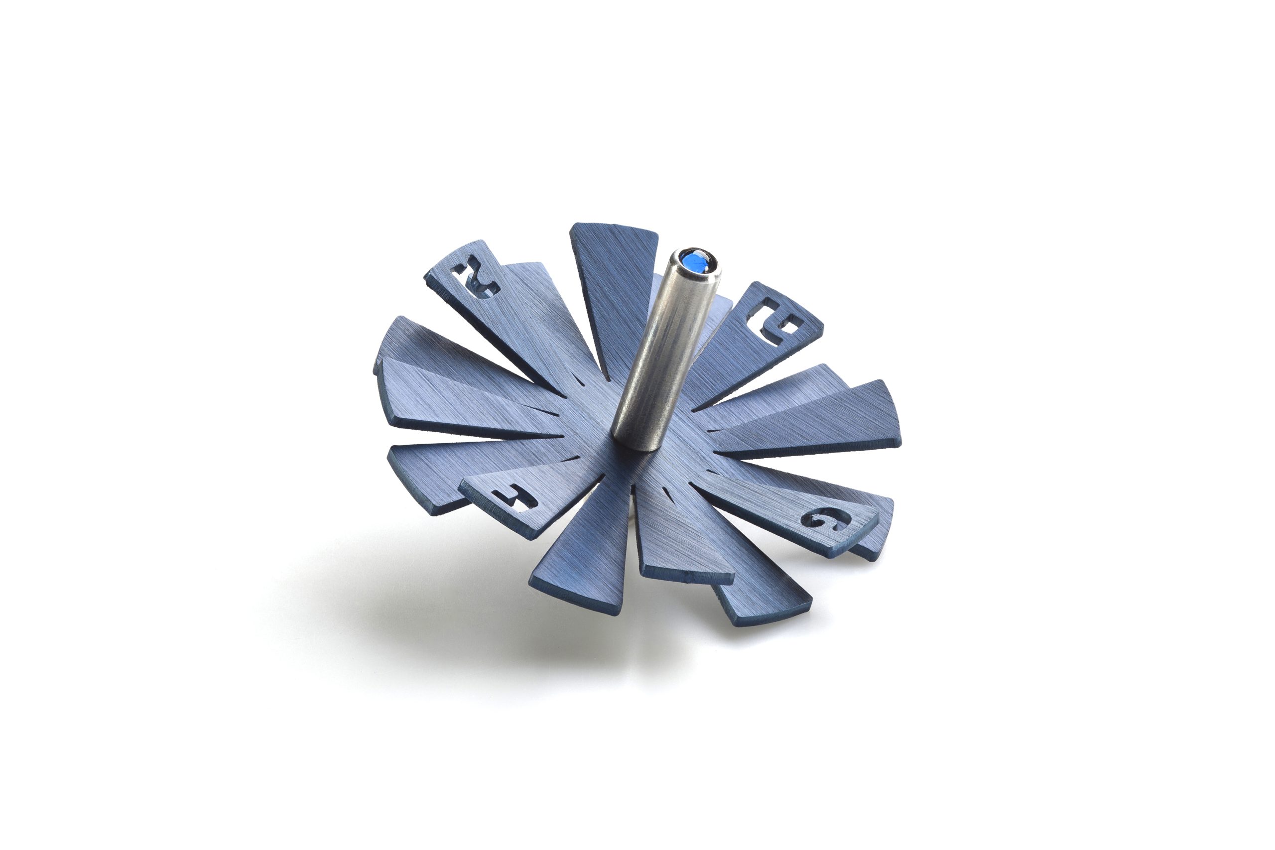 ALUMINUM BLUE SUNSHINE DREIDEL ON STAND