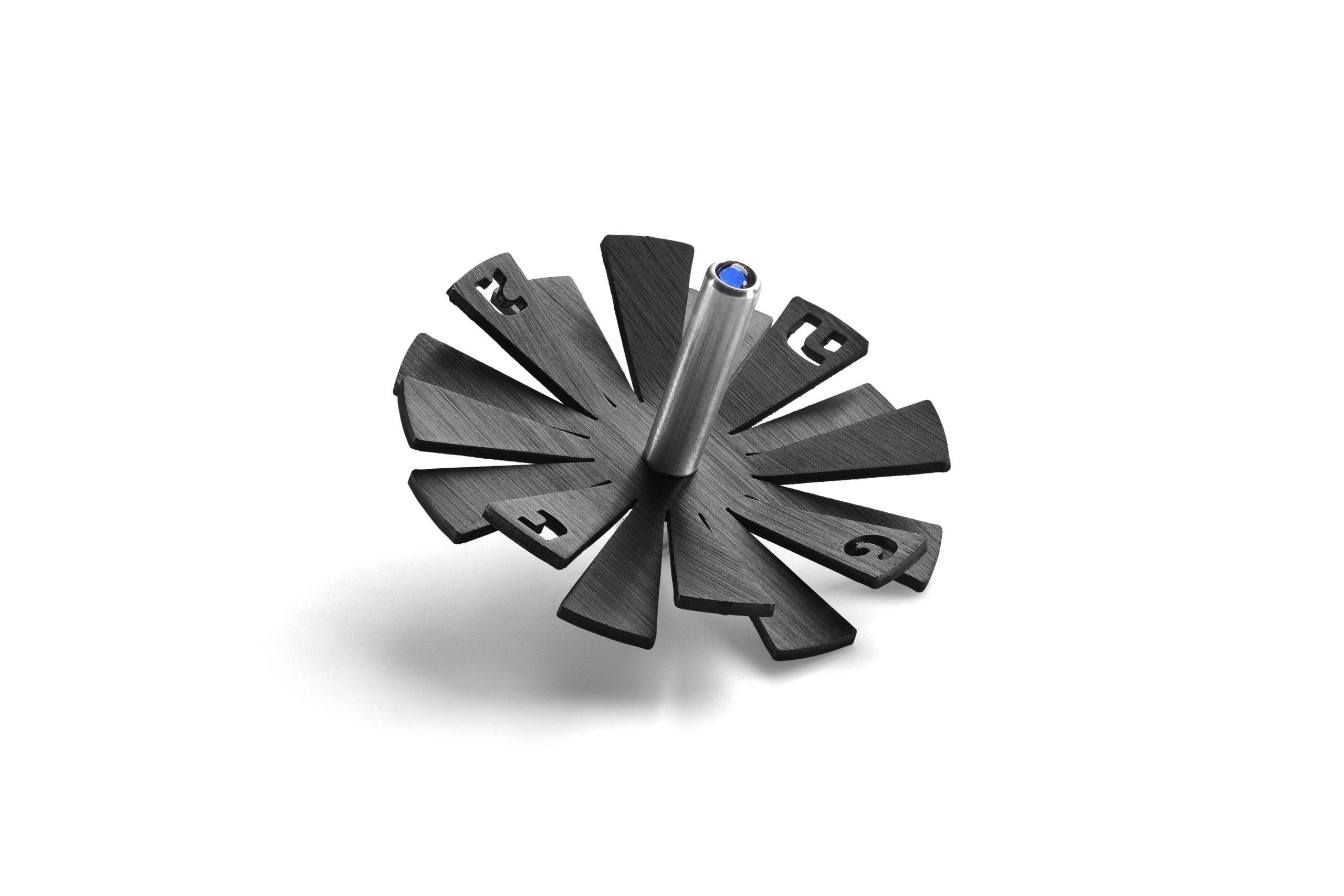 ALUMINUM BLACK SUNSHINE DREIDEL ON STAND