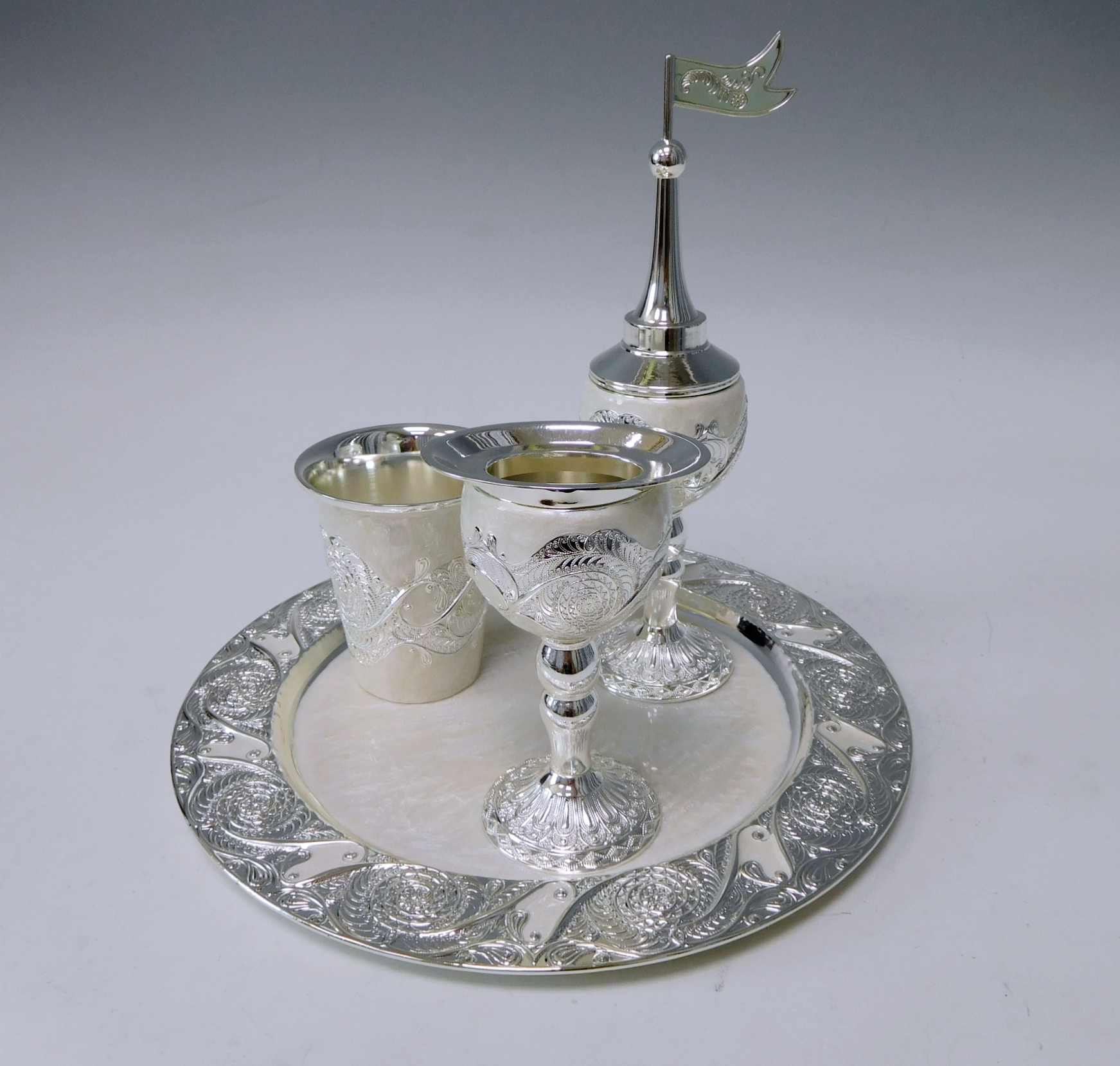 SILVER PLATED/WHITE ENAMEL DECORETED HAVDALLAH SET
