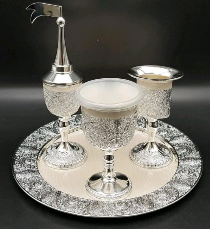 SILVER PLATED/WHITE ENAMEL FILIGREE HAVDALA SET