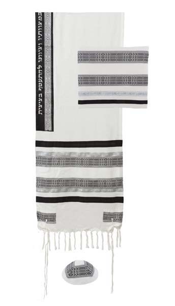 / VARIOUS FABRICS BLACK/WHITE TALLIT SET