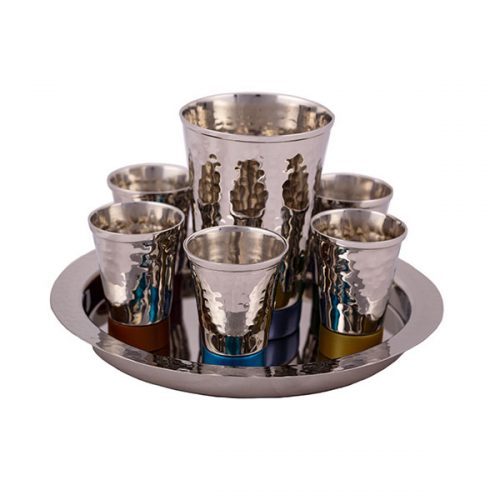 STAINLESS STEEL HAMMER WORK KIDUSH CUP/6 SM CUPS/TRAY