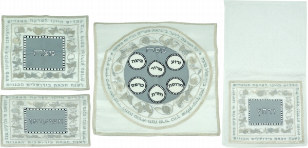 GREY MATZA/SEDER COVER/AFIKOMAN BAG/TOWEL DECORETED SET