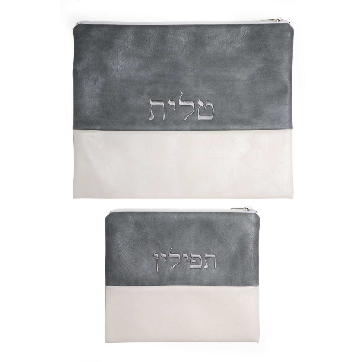 TALIT & TEFILIN BAGS LIGHT GREY/WHITE VINYL