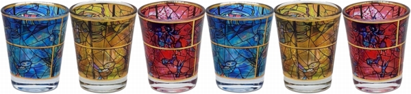 colorful ETCHING SHAGAL SET OF 6 CUPS