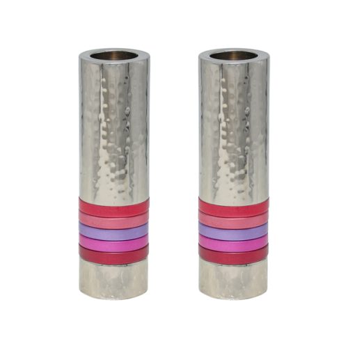 NICKEL HAMMER WORK CYLINDER/RINGS CANDLESTICKS