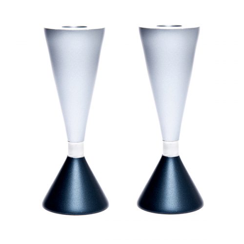 DOUBLE SIDED GREY CANDLESTICKS ANODIZE2 17 CM.