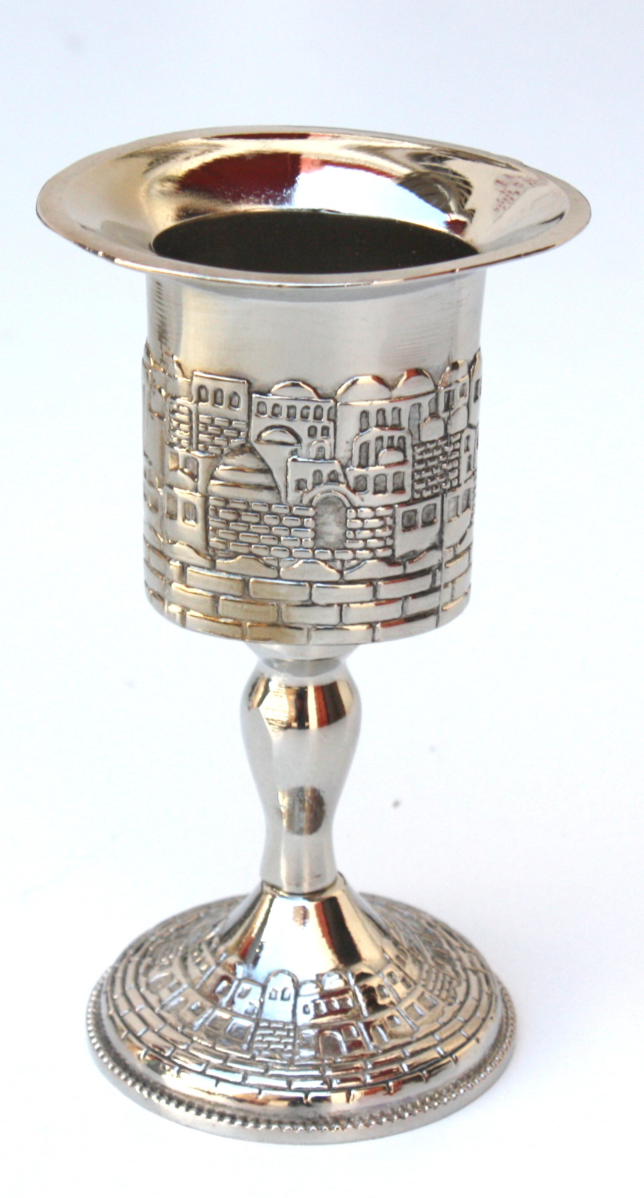 HAVDALA CANDLESTICK W/JERUSALEM NICKEL FINISH
