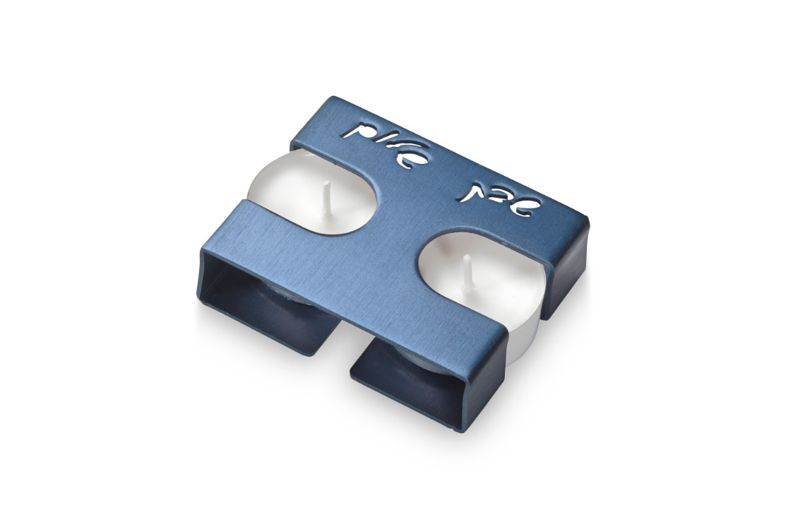ALUMINIUM BLUE RECTANGLE TRAVEL CANDLESTICK
