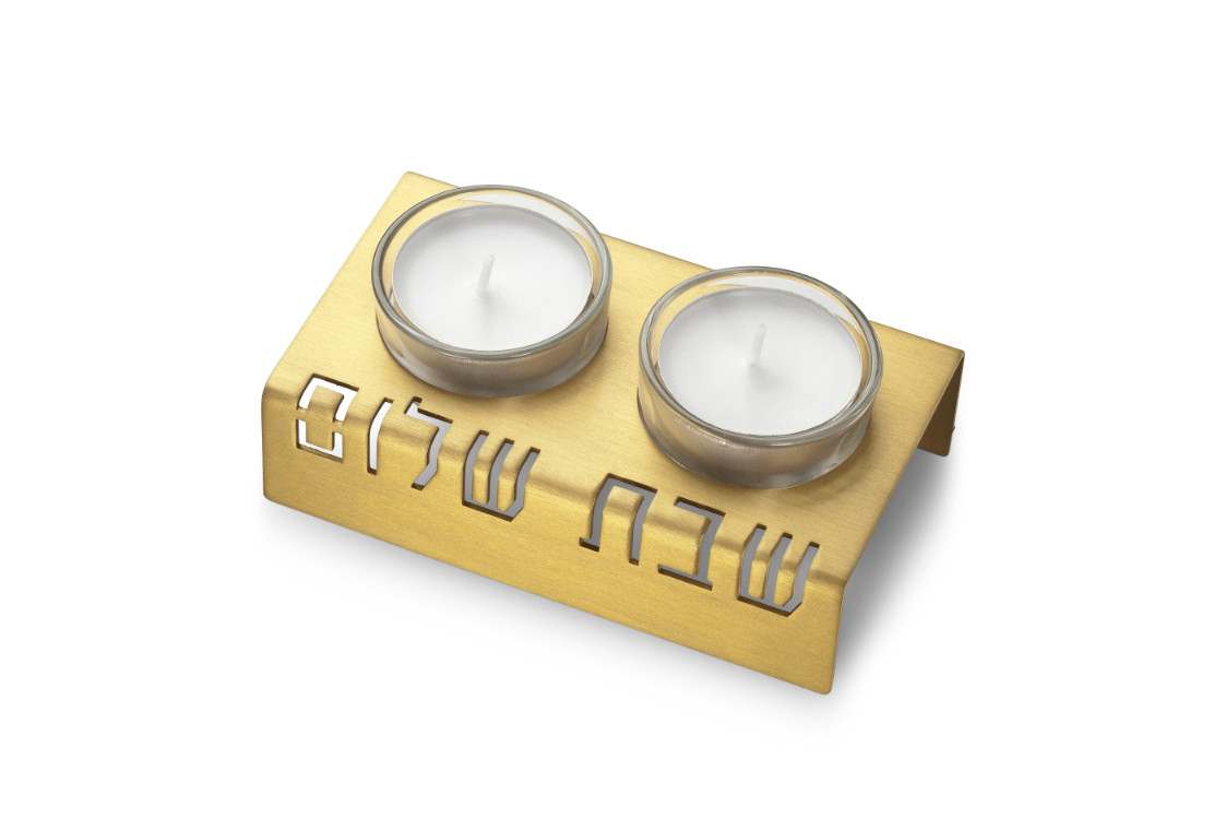 ALUMINUM GOLD “SHABBAT SHALOM” CANDLESTICK