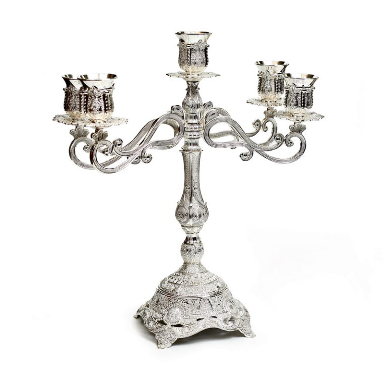 SILVER PLATED FILIGREE 5 BRANCH CANDLESTICKS 38 CM.