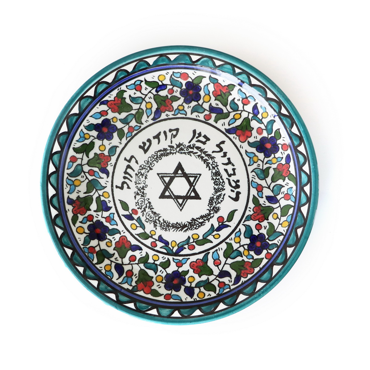/ ARMENIAN TEAL FLOWERS HAVDALAH PLATE 23.5 CM.