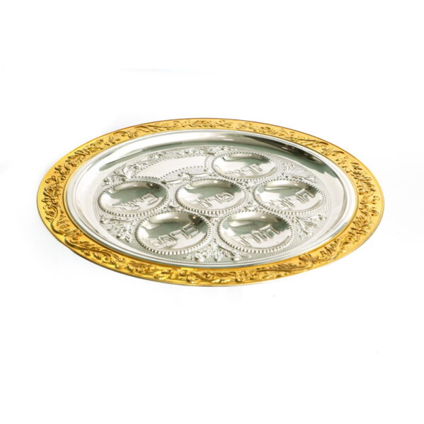 SILVER PLATED/GOLDEN STRIPE SEDER TRAY 40 CM.
