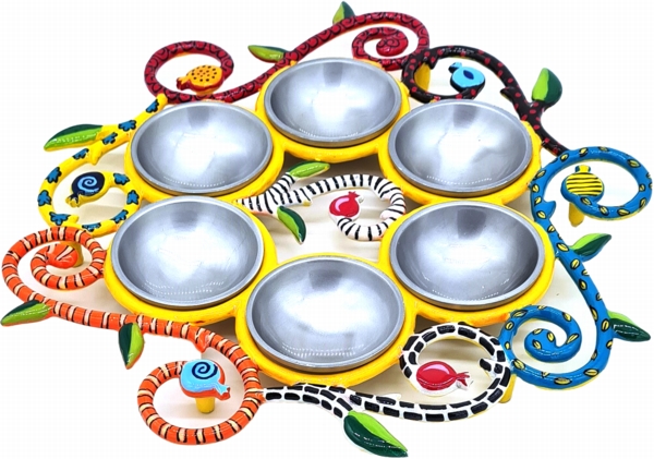COLORFUL SPIRAL /POMEGRANATES ALUMINIUM SEDER TRAY SET