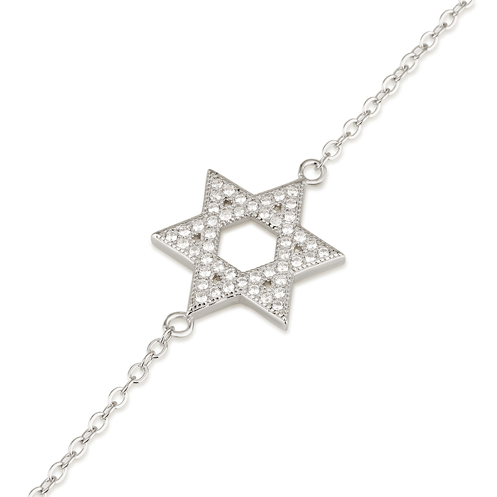 S ZIRCON STONES WHITE STAR OF DAVID BRACELET