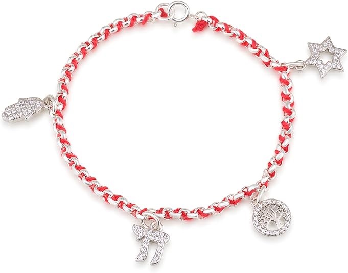 S HAMSA/STAR OF DAVID/CHAI/TREE OF LIFE KABBALAH BRACELET