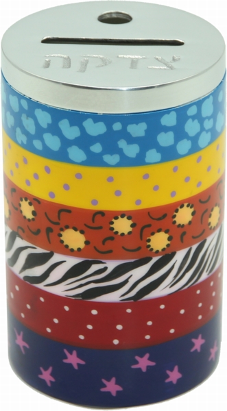 METAL ROUND COLORFUL ENAMEL TZEDAKAH BOX