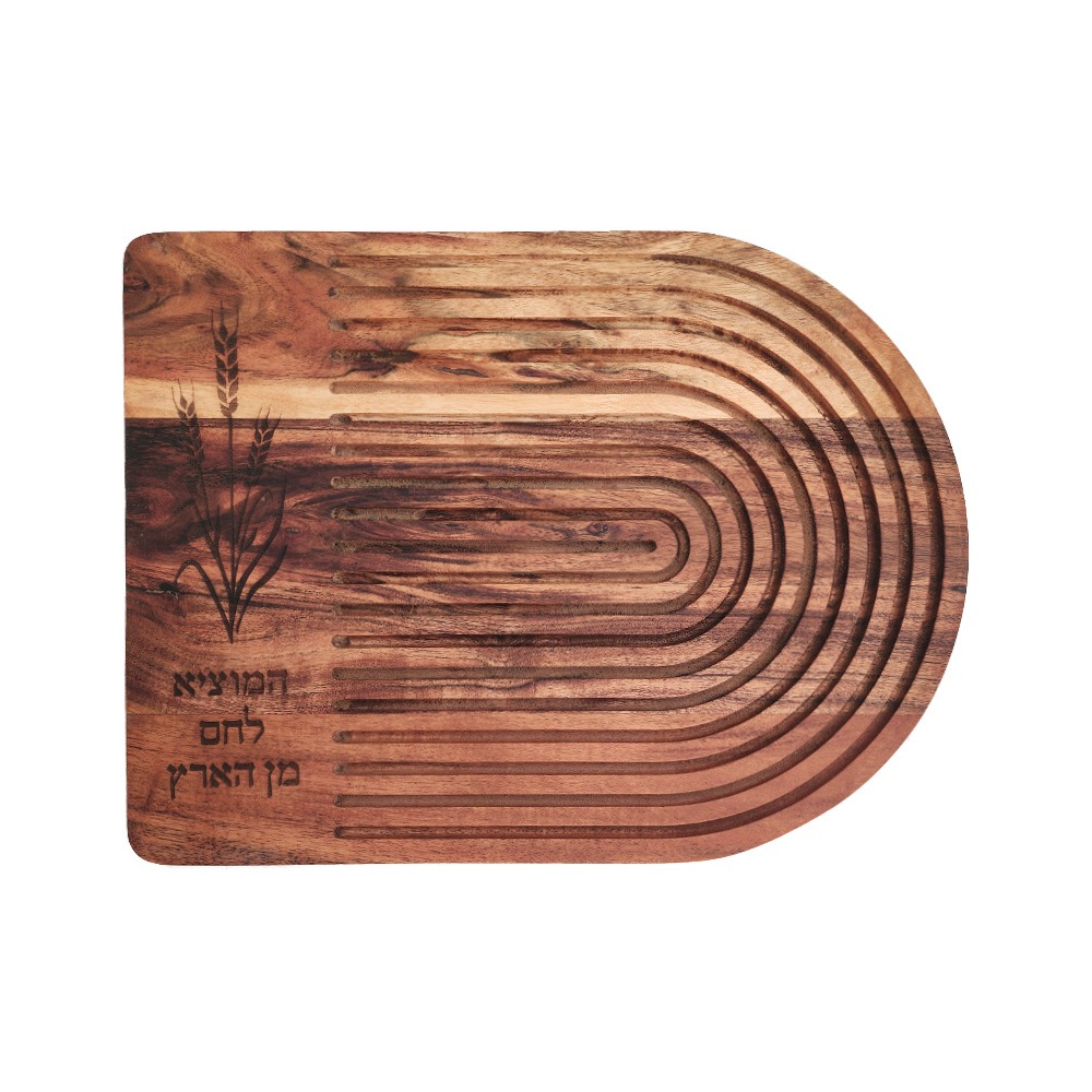 / NATURAL HALF CIRCLE ETCHED WHEAT DESIGN CHALLAH BOARD