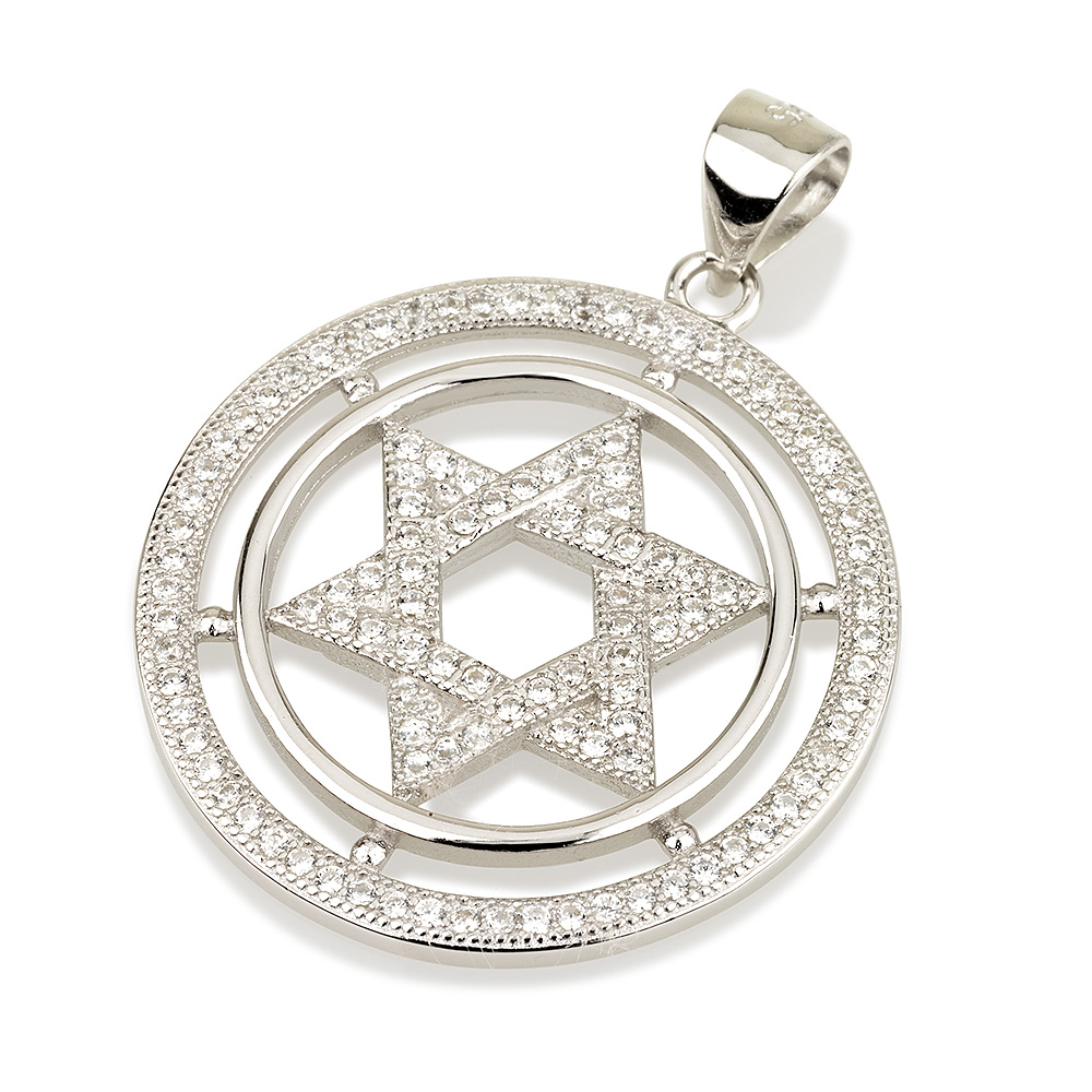 S ZIRCON STONES STAR OF DAVID IN TWO CIRCLES PENDANT